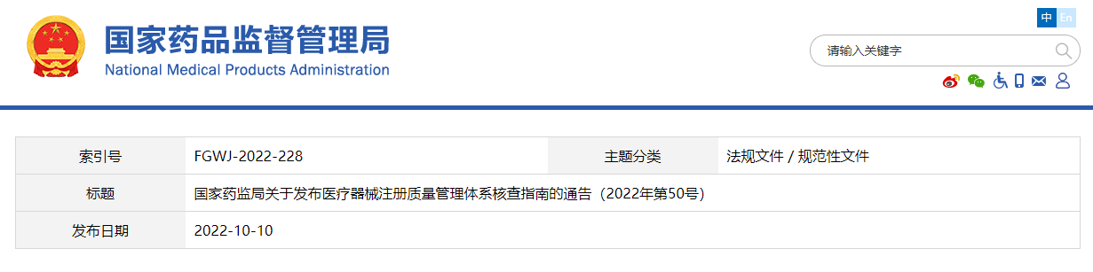 為做好醫(yī)療器械注冊人制度下注冊質(zhì)量管理體系核查工作,提高醫(yī)療器械注冊質(zhì)量管理體系核查工作質(zhì)量,根據(jù)《醫(yī)療器械監(jiān)督管理條例》(國務(wù)院令第739號)及《醫(yī)療器械注冊與備案管理辦法》(市場監(jiān)管總局令第47號)、《體外診斷試劑注冊與備案管理辦法》(市場監(jiān)管總局令第48號)、《醫(yī)療器械生產(chǎn)監(jiān)督管理辦法》(市場監(jiān)管總局令第53號)等要求,國家藥品監(jiān)督管理局組織修訂了《醫(yī)療器械注冊質(zhì)量管理體系核查指南》(見附件),現(xiàn)予發(fā)布,自發(fā)布之日起實施。國家藥品監(jiān)督管理局《關(guān)于發(fā)布醫(yī)療器械注冊質(zhì)量管理體系核查指南的通告》(2020年第19號)同時廢止。